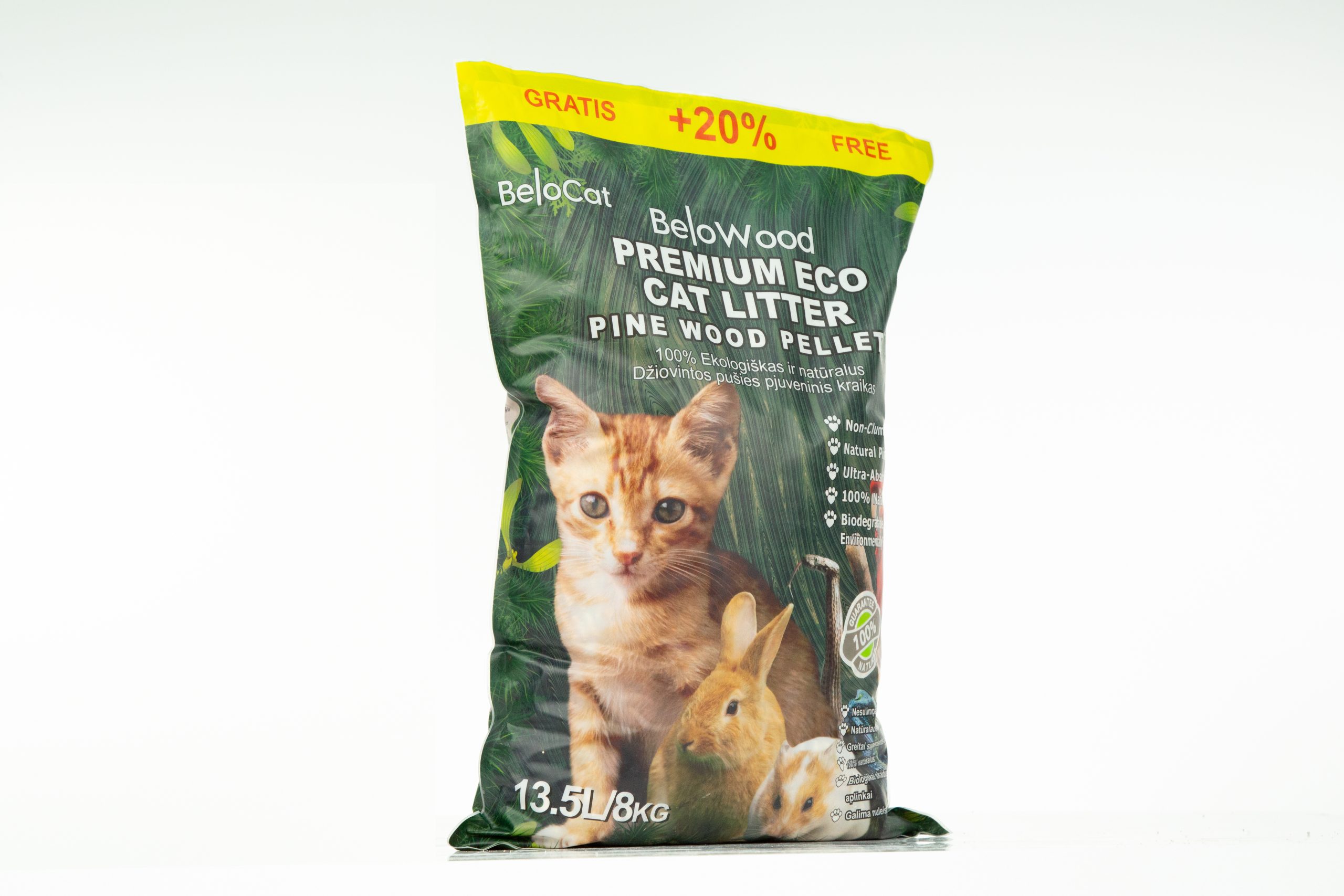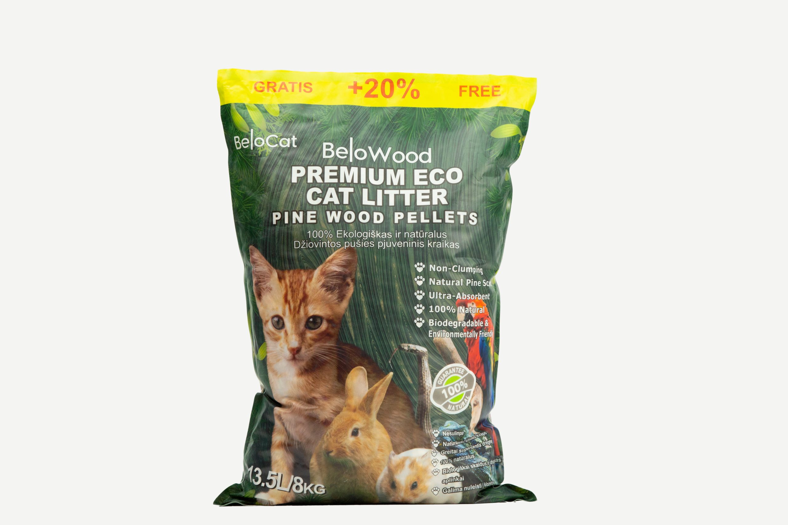 Privalumai: „BeloWood” Ekologiškas, 100% natūralios džiovintos pušies pjuvenos. Natūrali pušų aliejaus galia naikina amoniako kvapą bei kitus nemalonius kvapus. Sugeria drėgmę ir blogą kvapą, šis gaivus pušies kvapas panaikins Jūsų kačių kraiko dėžutės nemalonų kvapą. Natūralus pušies kvapas turi antibakterinių medžiagų ir savybių, kurios apsaugo nuo bet kokio tipo bakterijų. Panaudoti pušies medienos kačių kraiko milteliai gali būti perdirbami kaip trąšos gėlėms ir augalams. Panaudotą kačių kraiką išmeskite kartu su atitinkamomis buitinėmis atliekomis. Gamybos proceso metu nepridedama jokios cheminės medžiagos. Pušies medžio kačių kraiką galima nuleisti į tualetą.