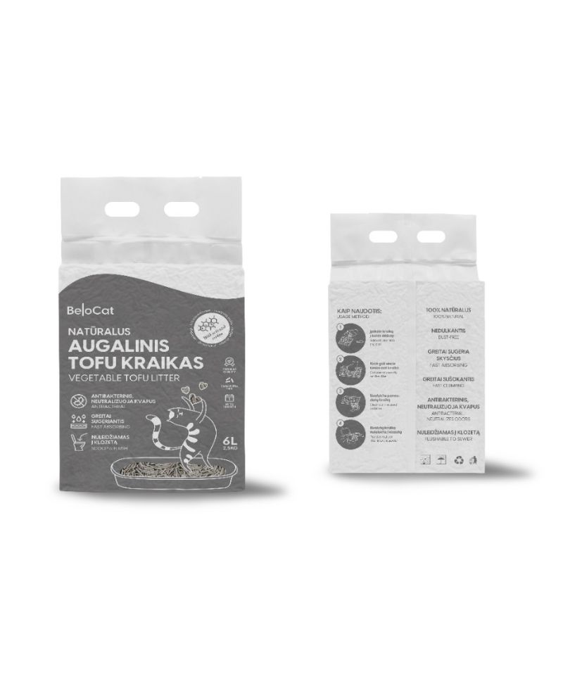 Naudojimas: Įpilkite kraiką į švarų katės tualetą, 2-4cm sluoksnio storio „TOFU“ kraiko. Panaudotą „TOFU“ kraiką pašalinkite / pakeiskite iš katės tualeto dėžutės kiekvieną diena arba pagal poreikį. Panaudotą „TOFU“ kraiką galite nuleisti į klozetą.